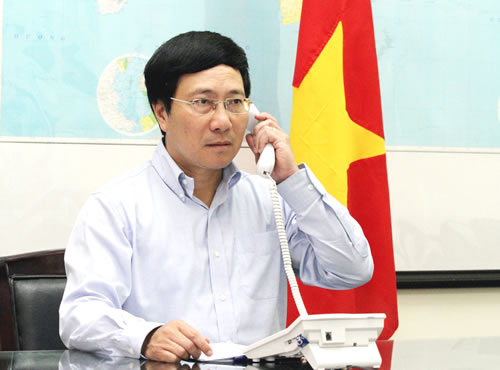 | Phó Thủ tướng Chính phủ, Bộ trưởng Ngoại giao Phạm Bình Minh điện đàm với Ủy viên Quốc vụ Trung Quốc Dương Khiết Trì. |