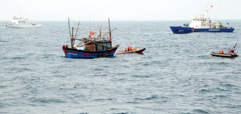 | Các đại biểu tham dự hội thảo đã đưa ra nhiều khuyến nghị chính sách để tăng cường hợp tác hiệu quả giữa hai nước Việt Nam và Trung Quốc nói chung và giữa các địa phương quanh vùng Vịnh Bắc Bộ nói riêng. Trong ảnh: Lực lượng chức năng Việt Nam – Trung Quốc phối hợp kiểm tra tàu cá trong đợt kiểm tra liên hợp năm 2014 trên Vịnh Bắc Bộ. Ảnh: VOV |