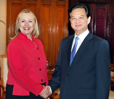 Thủ tướng Nguyễn Tấn Dũng tiếp Ngoại trưởng Hillary Clinton. |