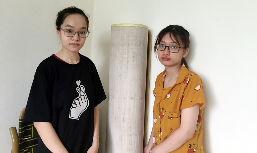 Không có mẹ, hai chị em thay phiên nhau vừa đi học, vừa chăm sóc cha. Trước khi chuyển lên chung cư Hòa Thọ Đông, ba cha con có 2-3 năm ở nhờ tại nhà thờ bên nội do không còn đủ tiền để trả tiền thuê trọ.