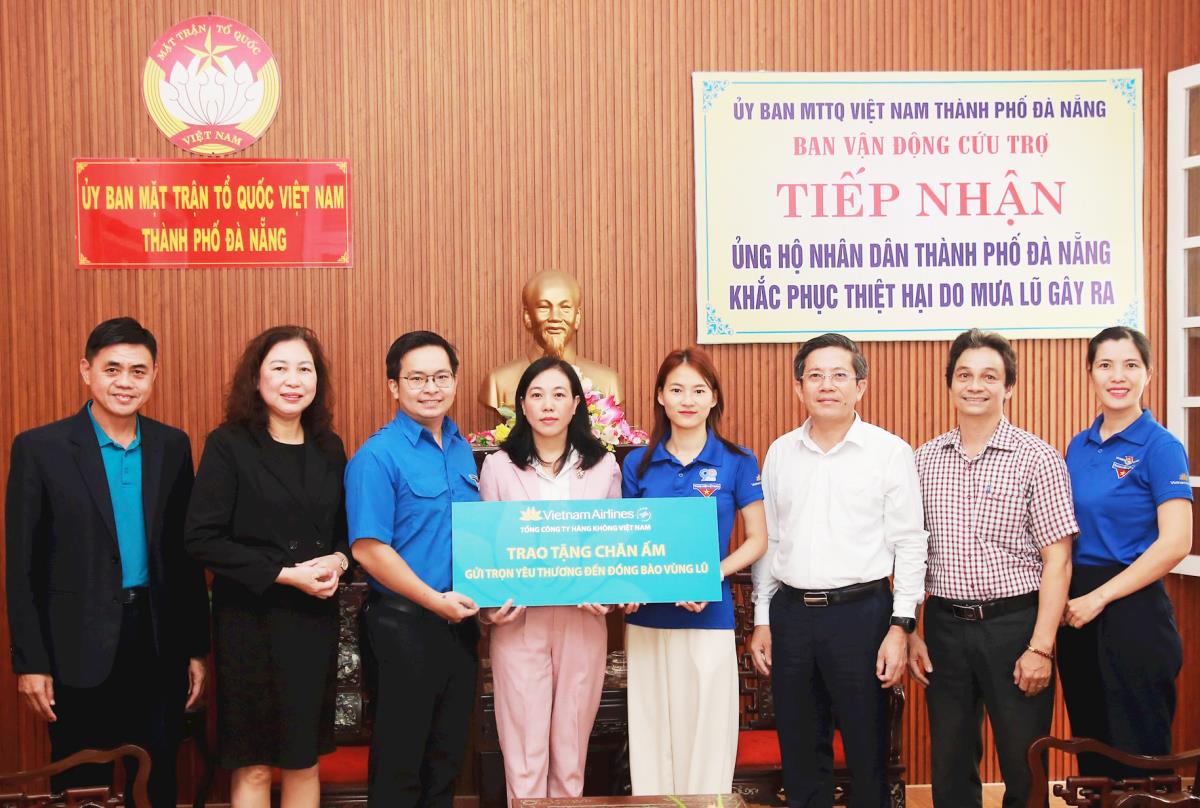 Nhân dịp này, Vietnam Airlines trao tặng 1 tỷ đồng và 1.000 tấm chăn ấm hỗ trợ người dân TP Đà Nẵng bị ảnh hưởng bởi thiên tai. Thay mặt lãnh đạo TP Đà Nẵng, Phó Chủ tịch UBND TP Trần Nam Hưng đã trân trọng cảm ơn Vietnam Airlines chia sẻ, động viên, giúp đỡ TP nhanh chóng khắc phục hậu quả do bão lũ gây ra, đồng thời cho biết, TP cam kết sẽ chuyển tiền, hàng hỗ trợ đến người dân đúng đối tượng, kịp thời và hiệu quả nhất.