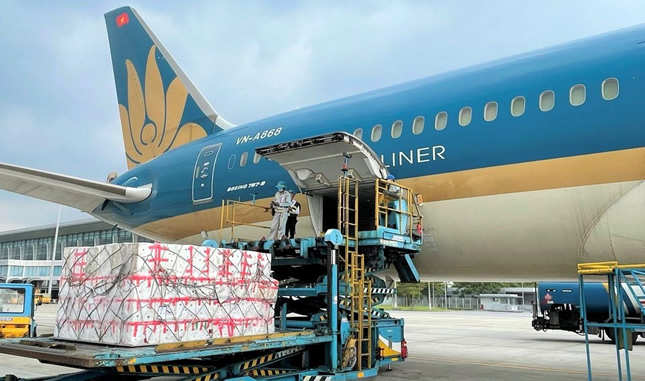 Máy bay của hãng hàng không Vietnam Airlines vận chuyển hàng hóa sang các nước Châu Âu. |