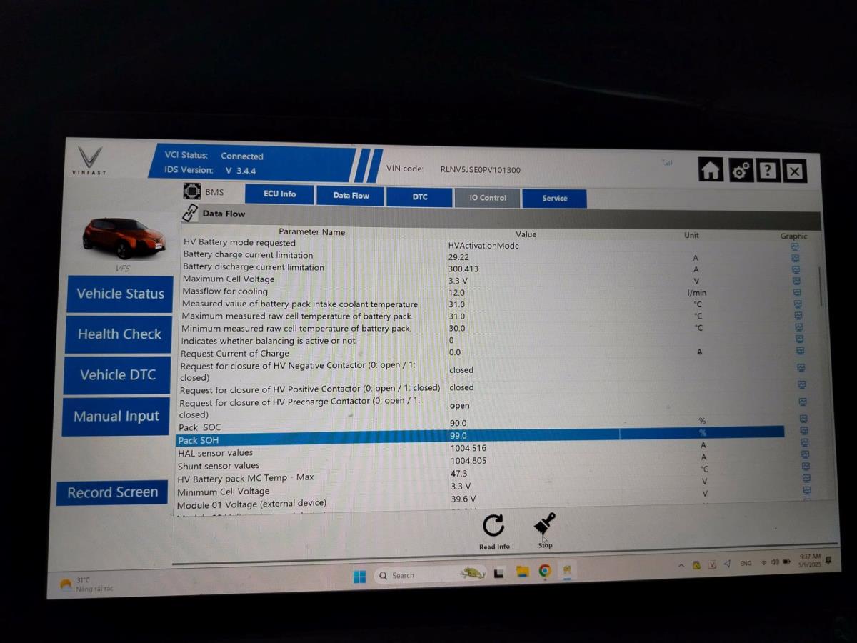 Kết quả kiểm tra tại xưởng dịch vụ chính hãng cho thấy, sau gần hai năm sử dụng, pin của xe chỉ bị chai khoảng 1%. Chủ xe – anh Hoàng Thanh Tùng cho biết anh không áp dụng biện pháp sạc hay bảo quản đặc biệt nào trong quá trình sử dụng. Xe được sạc theo nhu cầu hàng ngày mà không kiểm soát mức sạc cụ thể.