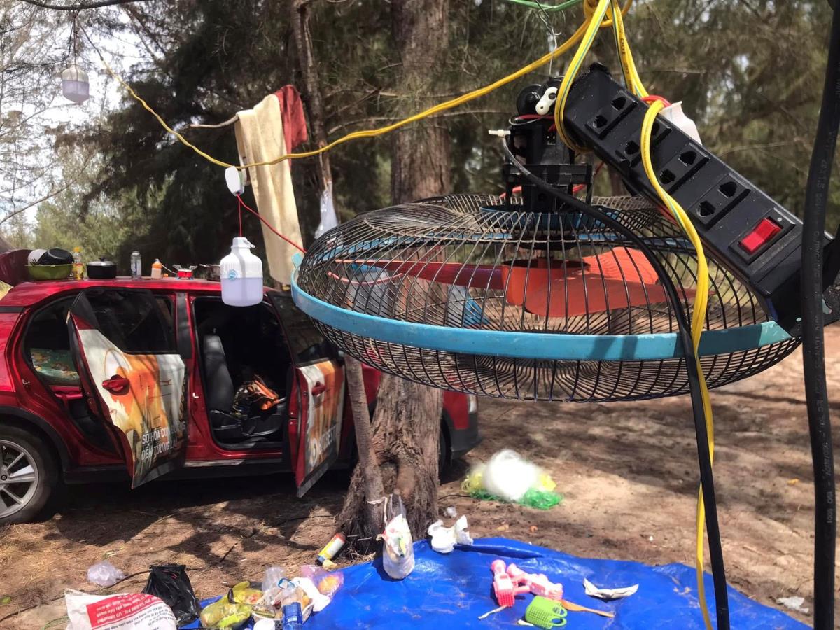 Chiếc VF 5 cũng thường được anh sử dụng cho các chuyến đi xa và dã ngoại. Trong một lần cắm trại, anh Tùng dùng pin xe để cấp điện cho 2 quạt lớn, 3 bóng đèn và 1 máy lạnh di động. Mức tiêu thụ ghi nhận khi đó chỉ tiêu tốn khoảng 30% dung lượng pin.