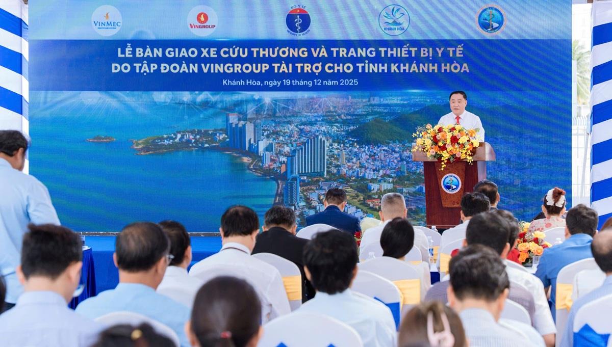Sáng 19/12, Tập đoàn Vingroup phối hợp với Bộ Y tế và UBND tỉnh Khánh Hòa tổ chức Lễ bàn giao xe cứu thương và trang thiết bị y tế do Vingroup tài trợ cho địa phương. Sự kiện đánh dấu bước tiến quan trọng trong lộ trình chuẩn hóa hệ thống cấp cứu ngoại viện, góp phần nâng cao năng lực phản ứng y tế khẩn cấp, chủ động ứng phó tai nạn và thiên tai tại một đô thị du lịch biển trọng điểm quốc gia.