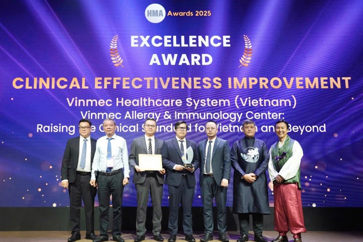 Trung tâm Dị ứng - Miễn dịch lâm sàng thuộc Hệ thống Y tế Vinmec vừa giành giải thưởng “Nâng cao hiệu quả điều trị lâm sàng” (Clinical Effectiveness Improvement) tại Hội nghị Quản lý Bệnh viện châu Á 2025 (Hospital Management Asia – HMA 2025). Đây là lần đầu tiên một cơ sở y tế Việt Nam nhận được giải thưởng danh giá này, khẳng định bước tiến mới của Vinmec và mở ra cột mốc mới cho ngành Y tế Việt Nam.