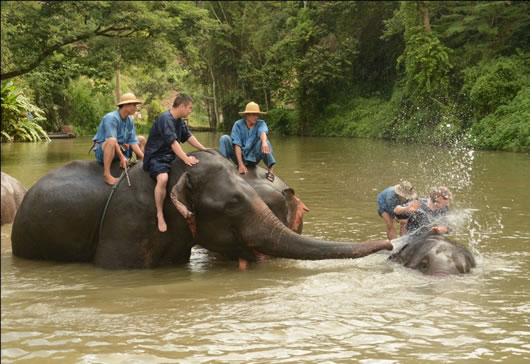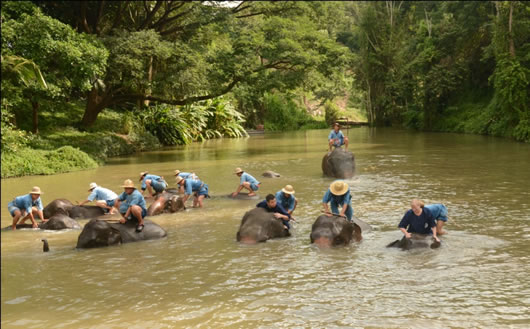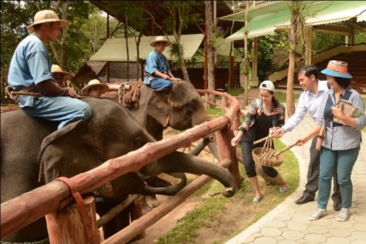 (Cadn.com.vn) - Không có kiểu uốn éo biểu diễn phụ hoạ lấn át của con người, 80 con voi khoẻ mạnh tại Trung tâm Bảo tồn voi Lam Pang (Thái Lan) như đưa du khách vào cuộc sống thực thụ của chúng. Thậm chí, dù có bỏ những khoản tiền nhất định nhưng khách du lịch luôn cảm thấy nhẹ nhàng vì không những được tận mắt nhìn những động tác dễ thương, mua những sản phẩm du lịch do voi “làm ra” mà còn học được nhiều bài học từ công nghệ làm du lịch của người Thái.