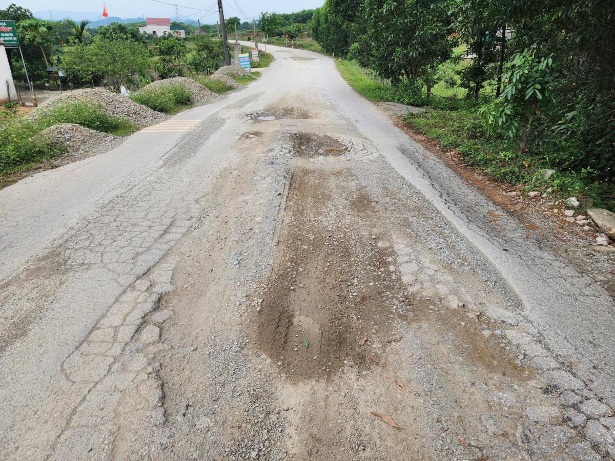 - Người dân địa phương cho rằng việc xe tải chở vật liệu xây dựng, xe chở keo tải trọng lớn là nguyên nhân khiến đường xuống cấp.