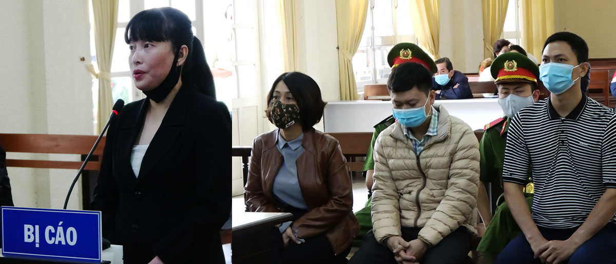 Bị cáo Bùi Thị Anh Thư và 3 bị cáo đồng phạm: Hạnh, Long, Chung tại tòa. |