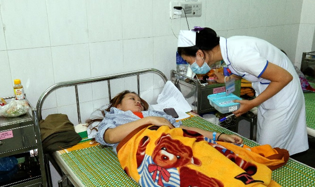 | Cô Mai đang được điều trị tại BV đa khoa Vĩnh Đức. |