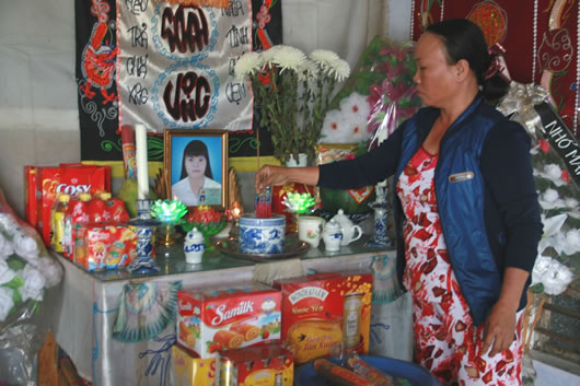 Bà Lê Thị Thu Hải bên di ảnh nạn nhân. |