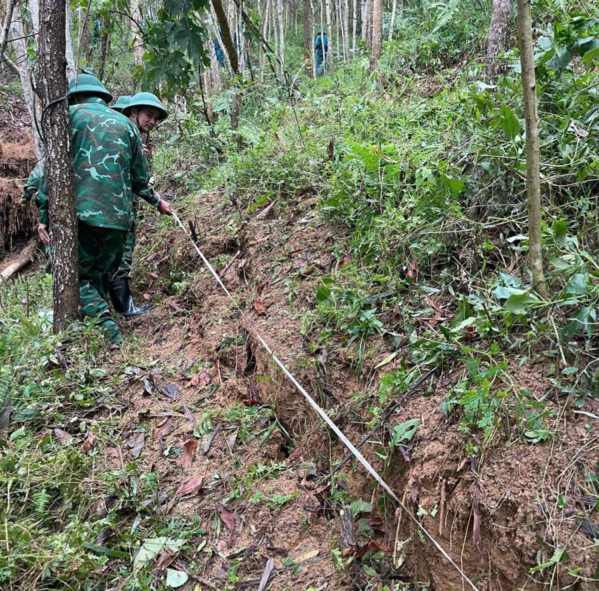 Cũng tại xã Đắc Pring, trước đó ngày 7-11, lực lượng chức năng phát hiện nhiều vết nứt trên đồi núi tại thôn 49A. Công an xã Đắc Pring cùng lãnh đạo xã, lực lượng Biên phòng, Quân sự đã tổ chức kiểm tra thực địa. Qua kiểm tra, lực lượng chức năng ghi nhận phía sau nhà ông PLong Hương xuất hiện vết nứt dài khoảng 13m, sụt sâu 40cm; khu vực nhà bà Kring Thị Vắc có vết nứt kéo dài 30m, sụt sâu khoảng 2m. Các điểm nứt nằm sát khu dân cư, tiềm ẩn nguy cơ sạt trượt cao, gây mất an toàn cho người dân. Trước tình hình trên, Công an xã đã phối hợp với chính quyền xã và các lực lượng sơ tán khẩn cấp 5 hộ dân/20 nhân khẩu đến nơi ở tạm, đảm bảo an toàn. Đồng thời, lực lượng chức năng đã căng dây, cắm biển cảnh báo tại các vị trí nguy hiểm; tuyên truyền, vận động người dân không đến gần khu vực này.