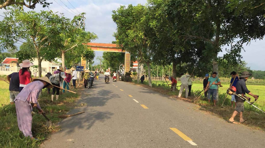 Dân làng 4 thôn xã Hòa Nhơn (H. Hòa Vang) tập trung dọn vệ sinh trên tuyến đường liên thôn kiểu mẫu. |