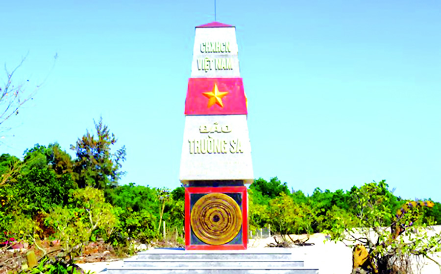 Cột mốc chủ quyền Trường Sa tại xã Bình Dương do cựu chiến binh xã đóng góp, xây dựng theo nguyên mẫu cột mốc chủ quyền trên đảo Trường Sa Lớn. |