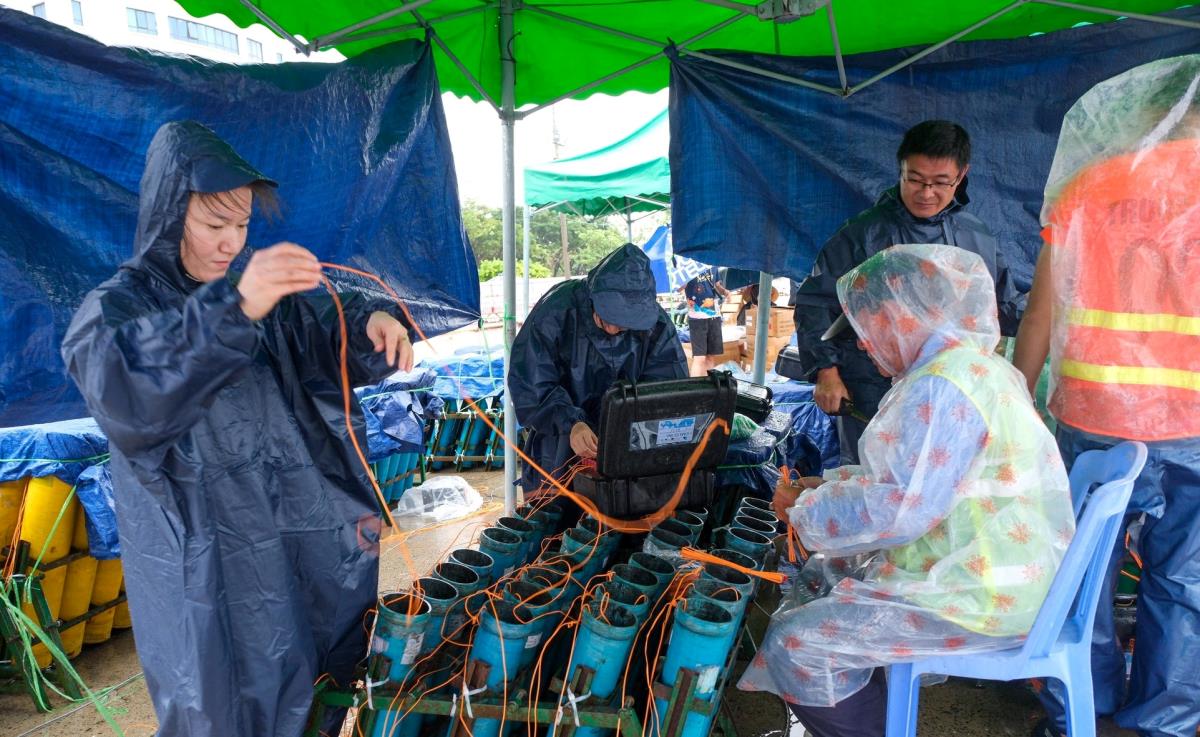 Những ngày qua, thời tiết Đà Nẵng liên tục có mưa lớn do ảnh hưởng của hoàn lưu bão Wutip - cơn bão số 1 trên Biển Đông. Bất chấp mưa rơi xối xả, khu vực bãi bắn pháo hoa bên bờ sông Hàn vẫn sôi động với nhịp độ làm việc khẩn trương của các kỹ thuật viên, tình nguyện viên và đội ngũ chuyên gia đến từ Trung Quốc và Canada. Hai đội sẽ đối đầu trong đêm thi mang chủ đề "Hành trình kết nối" vào tối nay (14-6).