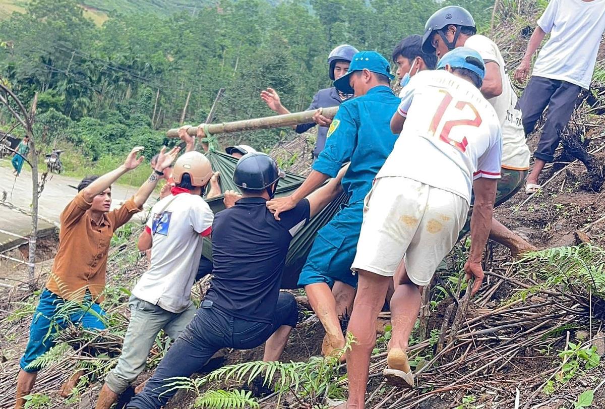 Tuy nhiên, do ảnh hưởng của mưa lớn kéo dài, nhiều tuyến đường trên địa bàn xã bị sạt lở nghiêm trọng, giao thông chia cắt. Đặc biệt, tuyến đường vào trung tâm xã bị đứt gãy nặng, khiến các phương tiện cơ giới không thể lưu thông, việc tiếp cận nạn nhân gặp rất nhiều khó khăn.