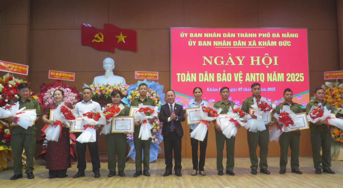 Dịp này, thừa ủy quyền của Bộ trưởng Bộ Công an, Đại tá Nguyễn Hà Lai đã trao Bằng khen của Bộ Công an tặng cán bộ, công nhân viên Công ty TNHH thương mại và du lịch Lý Châu Giang đã có thành tích xuất sắc trong Phong trào Toàn dân bảo vệ ANTQ năm 2024; trao Giấy khen của Giám đốc Công an TP Đà Nẵng tặng ông Đoàn Văn Thông, Bí thư Đảng ủy xã Khâm Đức đã có thành tích trong công tác tổ chức các hoạt động tiến tới Ngày hội Toàn dân bảo vệ ANTQ năm 2025. Chủ tịch UBND xã Khâm Đức cũng trao Giấy khen tặng 5 tập thể, 10 cá nhân có thành tích xuất sắc trong Phong trào Toàn dân bảo vệ ANTQ.