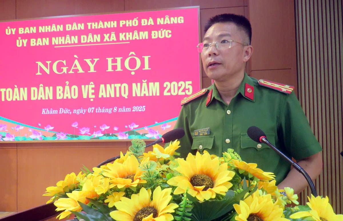 Phát biểu chỉ đạo Ngày hội, Đại tá Nguyễn Hà Lai - Phó Giám đốc Công an TP Đà Nẵng biểu dương và chúc mừng những thành tích xuất sắc mà Đảng bộ, chính quyền, lực lượng Công an và nhân dân xã Khâm Đức đã đạt được trong công tác bảo đảm ANTT và xây dựng phong trào Toàn dân bảo vệ ANTQ. Với tinh thần đoàn kết, đồng thuận, xã Khâm Đức đã giữ vững an ninh chính trị, trật tự, an toàn xã hội, góp phần quan trọng vào sự phát triển kinh tế - xã hội, mang lại diện mạo mới cho địa phương.