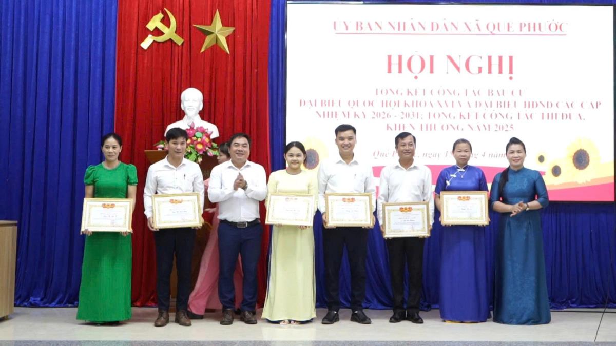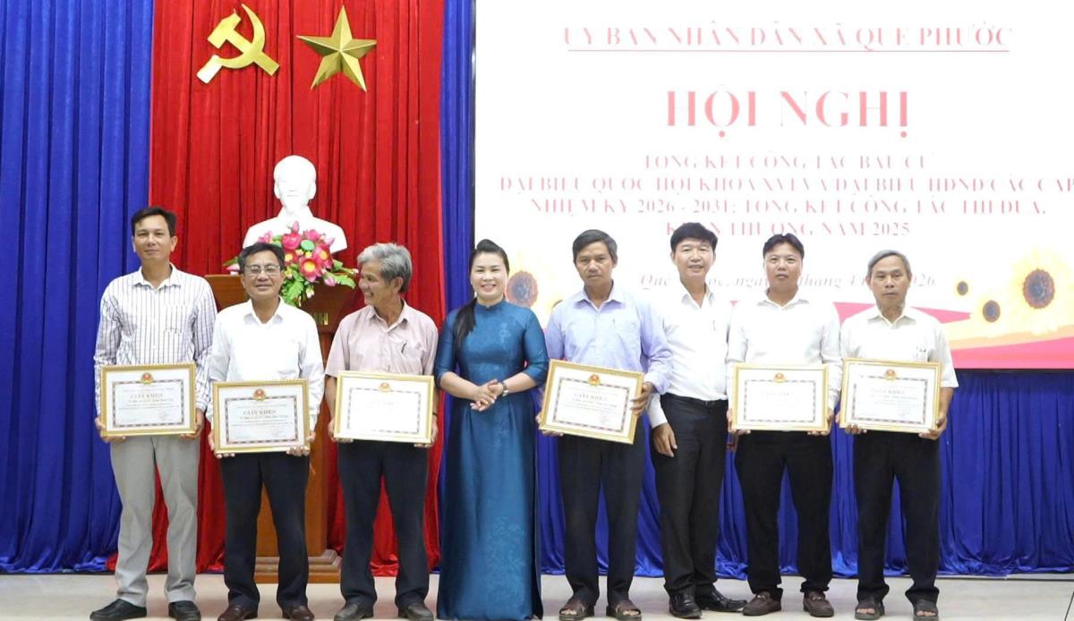 Dịp này, UBND xã Quế Phước công nhận 28 chiến sĩ thi đua cơ sở; tặng Giấy khen cho 5 tập thể và 15 cá nhân có thành tích xuất sắc trong thực hiện nhiệm vụ năm 2025. Ủy ban bầu cử xã cũng tuyên dương, khen thưởng 16 tập thể và 21 cá nhân có nhiều đóng góp trong công tác bầu cử đại biểu Quốc hội khóa XVI và đại biểu HĐND các cấp, nhiệm kỳ 2026 – 2031.