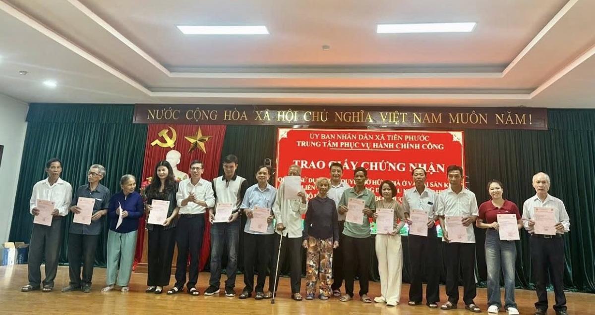 Đây là đợt trao Giấy chứng nhận quyền sử dụng đất và tài sản gắn liền với đất đầu tiên trên địa bàn xã Tiên Phước sau 1 tháng vận hành chính quyền địa phương 2 cấp.