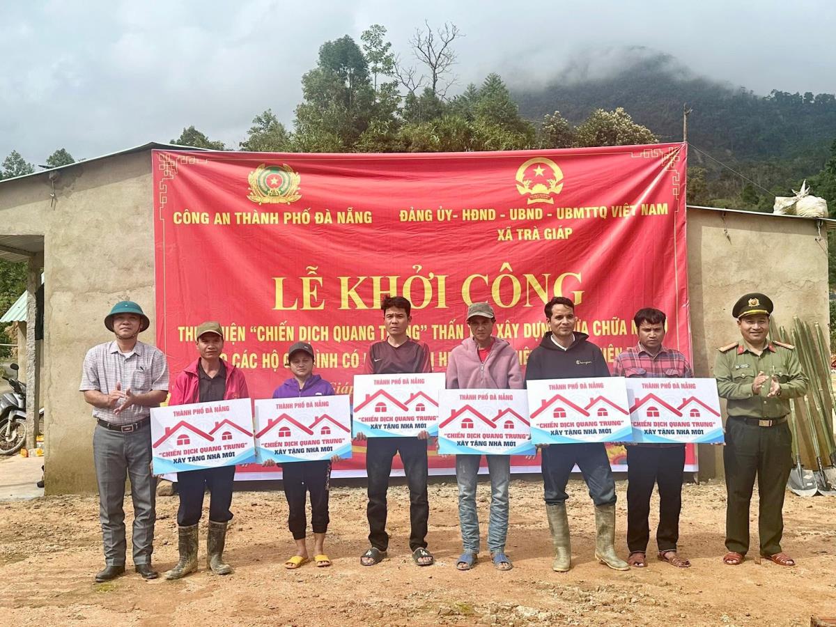 Ngày 12-12, tại thôn 3 (xã Trà Giáp, TP Đà Nẵng), Công an TP Đà Nẵng phối hợp với chính quyền xã Trà Giáp tổ chức Lễ khởi công triển khai “Chiến dịch Quang Trung” hỗ trợ xây dựng nhà ở cho 6 hộ dân bị thiệt hại hoàn toàn và sửa chữa cho 5 hộ bị hư hỏng nặng sau đợt thiên tai vừa qua.