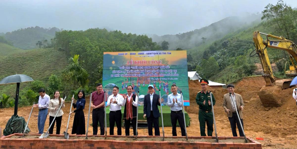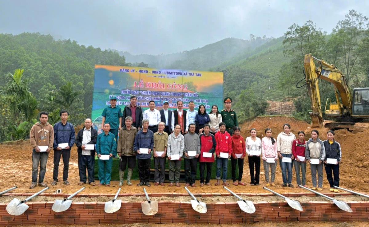 Phát biểu tại lễ khởi công, ông Nguyễn Hồng Lai – Bí thư Đảng ủy xã Trà Tân cho biết, Trà Tân là một xã miền núi, điều kiện kinh tế - xã hội còn rất nhiều khó khăn; kinh tế chủ yếu là trồng trọt, chăn nuôi nhỏ, với gần 50% là hộ nghèo, cận nghèo; đồng bào dân tộc thiểu số gần 80%. Những ngày cuối tháng 10 vừa qua, trận lũ lụt kinh hoàng đã giây thiệt nặng nề trên địa bàn các tỉnh miền Trung, trong đó có xã Trà Tân. Với hơn 60 điểm sạt lở lớn nhỏ, đặc biệt trong đó có nhiều điểm sạt lở lớn với hàng nghàn mét khối tại thôn Trà Giác, thôn Thăng Phương; toàn xã có 85 ngôi nhà bị sạt lở, sập, trong đó có 18 căn nhà bị sụp đổ, cuốn trôi hư hỏng hoàn toàn. Những mất mát ấy không chỉ là tổn thất về vật chất, nhiều gia đình 2 tháng qua phải ở tạm nhà người thân, một số gia đình phải che tạm lều bạt để sống tạm bợ, đây là điều trăn trở, nỗi lo thường trực của cấp uỷ, chính quyền địa phương.