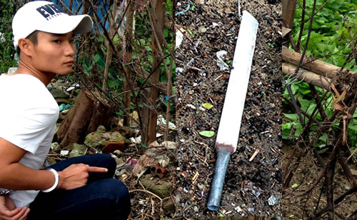 Nguyễn Văn Minh chỉ vị trí giấu hung khí gây án và tang vật vụ án. |