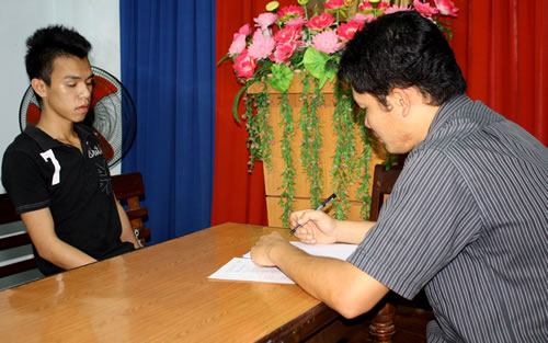 Cơ quan CSĐT CATP Đà Nẵng lấy lời khai hung thủ Đặng Văn Anh - kẻ trực tiếp đâm chết nạn nhân Lê Công Sang. |