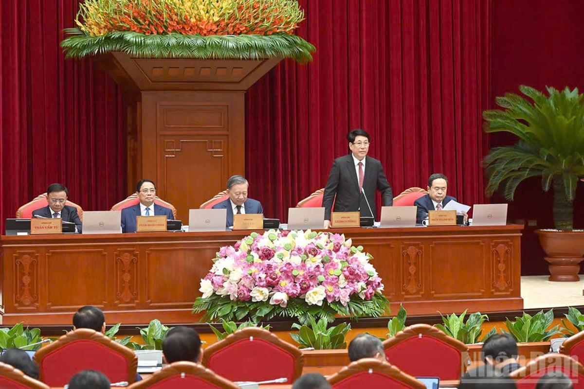 Tổng Bí thư nêu rõ, để hoàn thành khối lượng công việc rất lớn trong thời gian ngắn, yêu cầu đặt ra là từng Ủy viên TƯ cần phát huy cao độ tinh thần trách nhiệm, tập trung trí tuệ, thảo luận dân chủ, thẳng thắn, khách quan và cầu thị; phải đặt lợi ích quốc gia, dân tộc lên trên hết, trước hết; không để bất kỳ lợi ích cục bộ, cảm tính cá nhân hay nể nang, né tránh làm ảnh hưởng tới chất lượng quyết sách. Mỗi ý kiến đóng góp tại Hội nghị lần này không chỉ có ý nghĩa với nội dung văn kiện, mà còn có vai trò trong việc hình thành đường lối chiến lược của Đảng ta từ nay đến năm 2030 và tầm nhìn đến năm 2045, 2050.