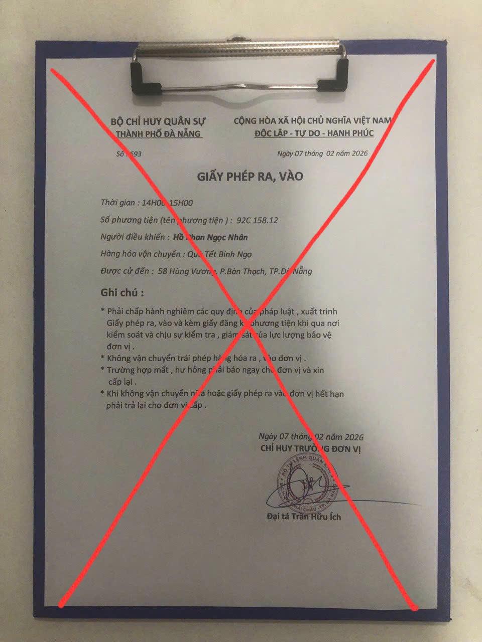 Trước sự việc trên, ngày 7-2, Bộ CHQS thành phố Đà Nẵng khẳng định: Đây là văn bản hoàn toàn giả mạo, không do Bộ CHQS thành phố ban hành, không đúng thể thức văn bản quân sự, không đúng quy trình quản lý, cấp phép và không có giá trị pháp lý. Đồng thời, nội dung, hình thức trình bày, con dấu và chữ ký trong văn bản này không trùng khớp với bất kỳ mẫu biểu, hồ sơ lưu trữ chính thức nào của đơn vị.