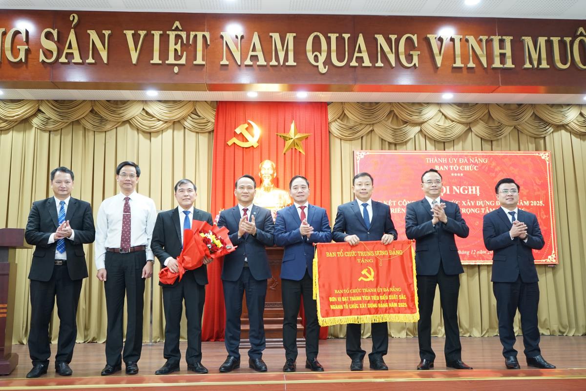 Sáng 23-12, Ban Tổ chức Thành ủy Đà Nẵng tổ chức Hội nghị tổng kết công tác tổ chức xây dựng Đảng năm 2025, triển khai nhiệm vụ trọng tâm năm 2026 và Tổng kết, trao giải Búa Liềm Vàng thành phố năm 2025. Hội nghị được tổ chức tại Ban Tổ chức Thành ủy và kết nối trực tuyến đến các điểm cầu đảng ủy xã, phường trên địa bàn thành phố.