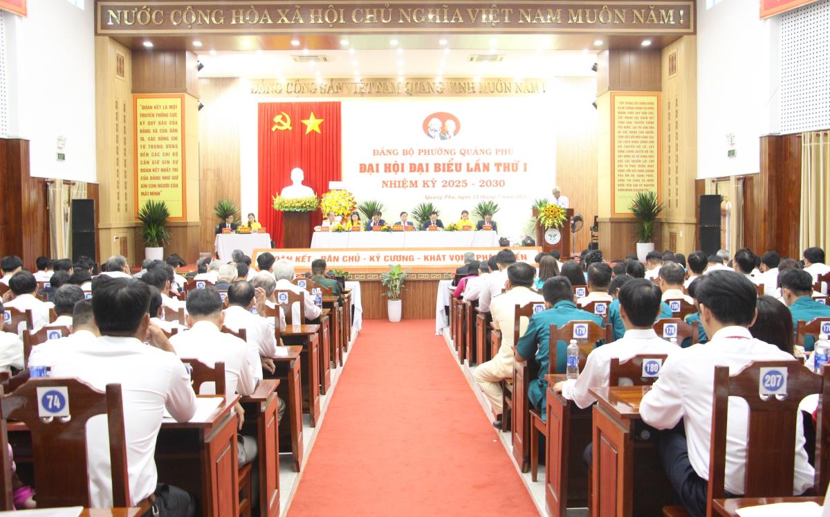Đại hội công bố quyết định của Ban Thường vụ Thành ủy Đà Nẵng chỉ định tham gia Ban Chấp hành Đảng bộ phường Quảng Phú nhiệm kỳ 2025-2030 gồm 27 đồng chí, 10 đồng chí tham gia Ban Thường vụ Đảng ủy phường. Đồng chí Bùi Ngọc Ảnh giữ chức Bí thư Đảng bộ phường, hai đồng chí Phạm Đình Vũ và Nguyễn Minh Nam giữ chức Phó Bí thư Đảng bộ phường.
