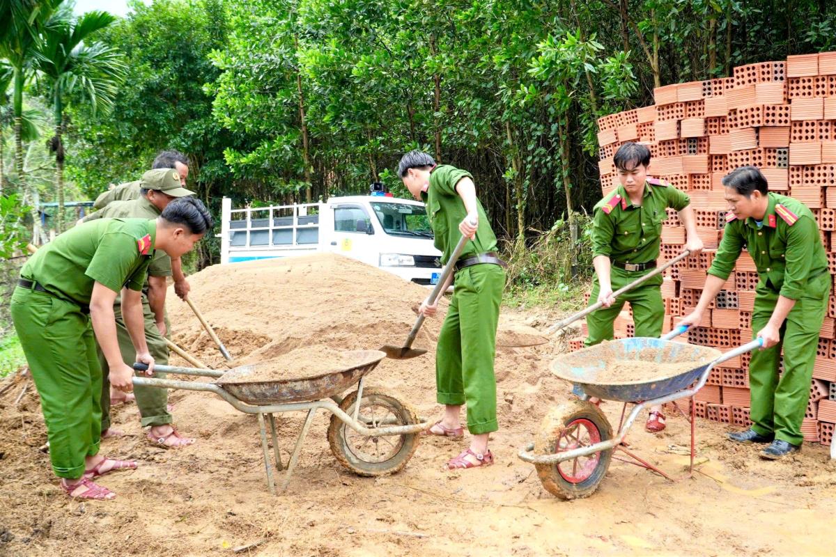 Công an tỉnh Quảng Ngãi giúp người dân xây nhà sau bão lũ.