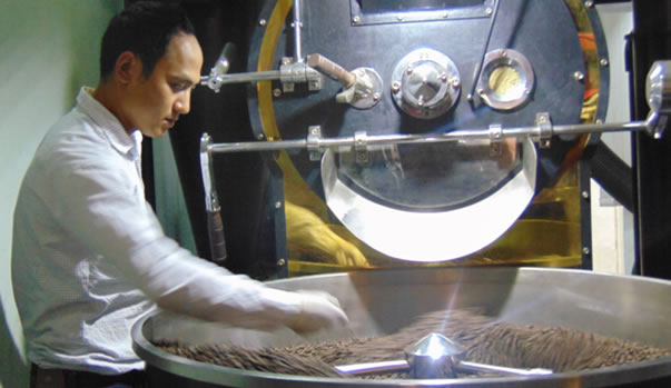 Anh Hồ Đức Tiến tại cơ sở sản xuất cà-phê sạch Mayaca.