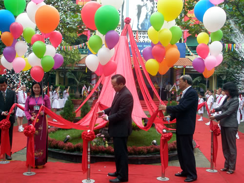 Trường THCS Kim Đồng trong ngày vui khánh thành tượng Kim Đồng. Ảnh: P.T |