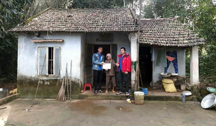 CLB Kết nối yêu thương đến trao số tiền 700 ngàn đồng trợ cấp hàng tháng cho cụ Minh. |