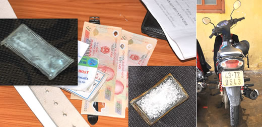Liên tục theo dõi, xác minh, 16 giờ ngày 1-12, tổ công tác của Đội CSĐTTPVMT CAQ Hải Châu bắt quả tang Lê Hoàng Triều (1996, trú K18/30-Phan Kế Bính, P. Thuận Phước, Q. Hải Châu) cùng Ngô Thành Nhân (tên gọi khác là Rớt, 1990, trú KDC Nam Cẩm Lệ, Đà Nẵng) đang bán ma túy cho một con nghiện tại giao lộ Lương Ngọc Quyến - Hải Hồ (P. Thanh Bình, Q. Hải Châu), thu giữ 1g ma túy tổng hợp (hàng đá), 1,2 triệu đồng tiền bán ma túy, 2 ĐTDĐ, 1 xe máy cùng một số giấy tờ liên quan khác… Theo khai nhận của Nhân và Triều, số ma túy cả hai đưa đi giao cho con nghiện là của Quý (Quý là người yêu của Nhân) hiện đang thuê trọ tại P. Thuận Phước (Q. Hải Châu).