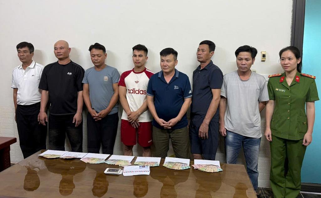 Qua nắm tình hình, Công an xã Hợp Minh phát hiện, bắt quả tang 7 “con bạc”, gồm: