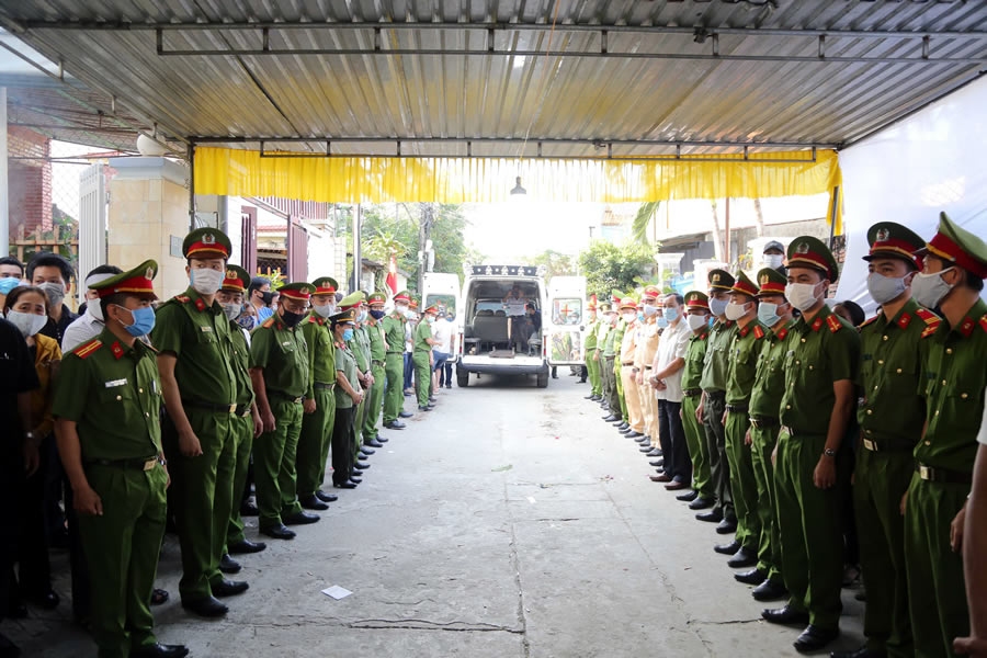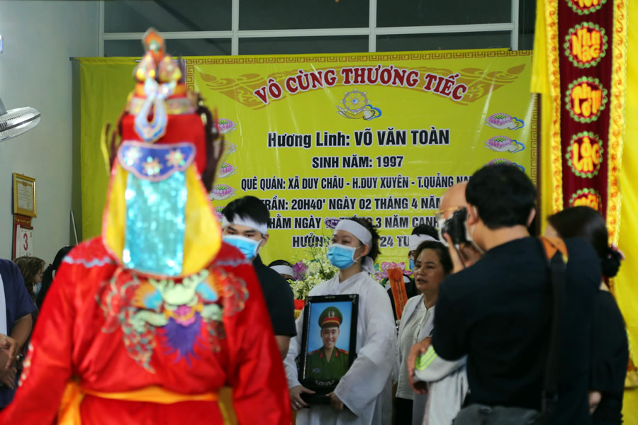 Sáng 5-4, tại tư gia riêng ở P. Phước Mỹ, Sơn Trà, TP Đà Nẵng, đồng đội, người thân, bạn bè đã đến đưa tiễn Thượng sỹ Võ Văn Toàn về nơi an nghỉ cuối cùng. Tiễn biệt chàng chiến sỹ trẻ hy sinh trên đường làm nhiệm vụ, để lại bao ước mơ còn dang dở khiến ai cũng xót xa. Trước đó, 19 giờ ngày 4-4, Đảng ủy, Giám đốc Công an TP Đà Nẵng, CAQ. Sơn Trà cũng đã tổ chức lễ truy điệu.