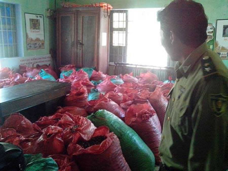 | Lực lượng kiểm lâm bắt giữ một vụ vận chuyển quả ươi với số lượng lớn. Ảnh: N.T |