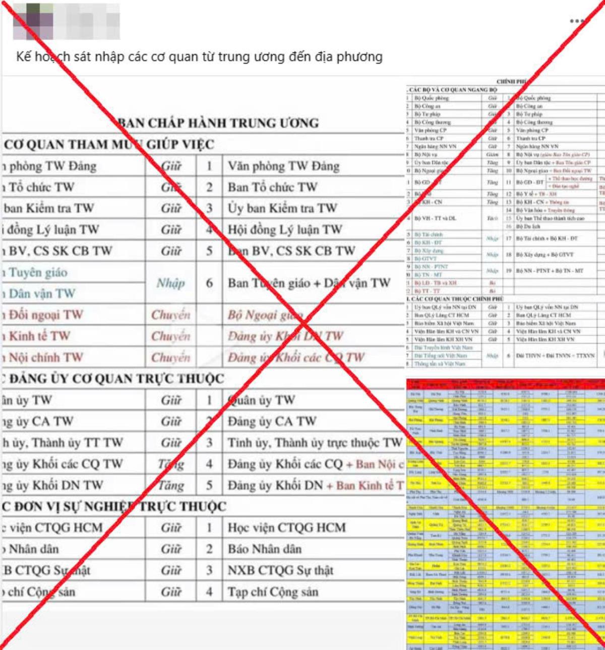 Tiếp đó, ngày 28-11, tài khoản facebook Đ.C. của ông L.V.T. đăng tải các hình ảnh tương tự với nội dung “Kế hoạch sát nhập các cơ quan từ trung ương đến địa phương”.