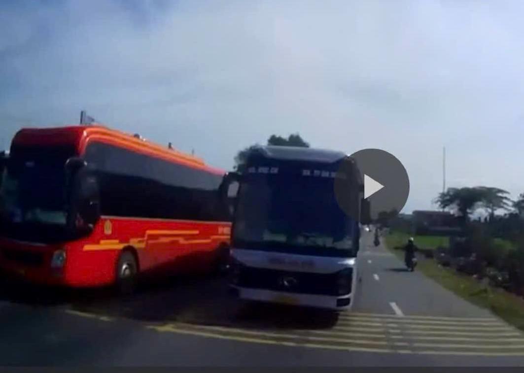 Hình ảnh xe ô-tô khách do tài xế L. điều khiển vượt ẩu.