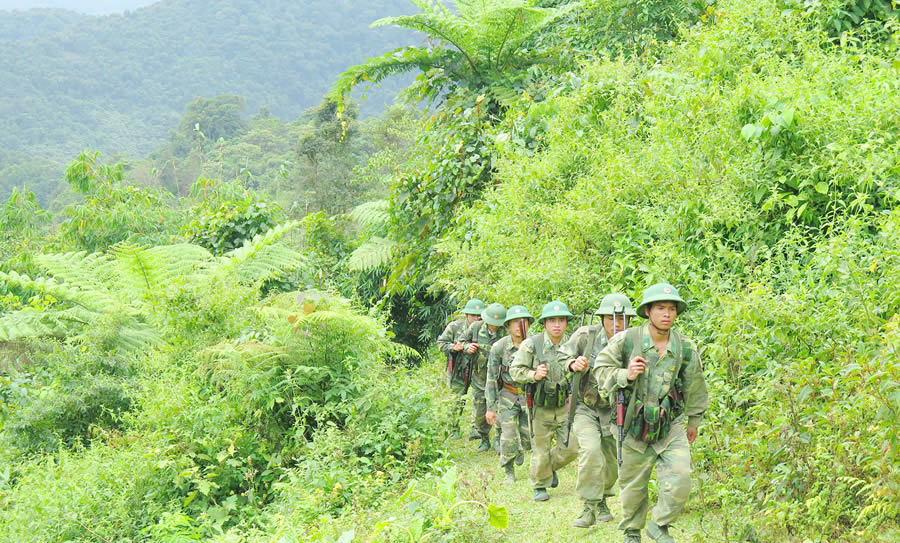| Chiến sĩ Đồn Biên phòng Gary tuần tra bảo vệ khu vực biên giới. |