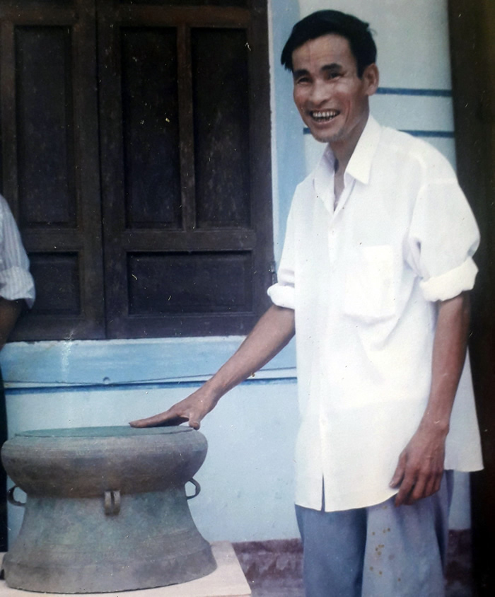 Ông Sơn chụp ảnh cùng bảo vật quốc gia vào năm 1998. |