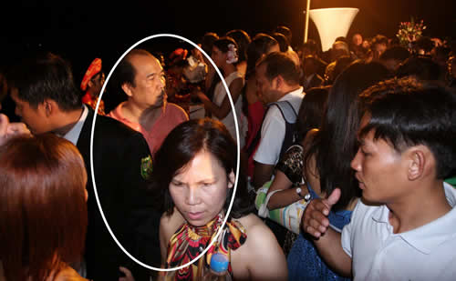 Vợ chồng người đàn ông (trong khuôn) sau khi hành hung P.V Minh Quốc |