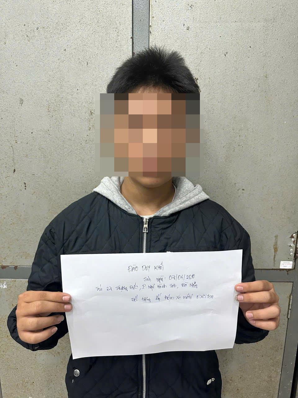 Đúng như nhận định, khoảng 3 giờ ngày 6-7-2025, ba đối tượng xuất hiện, lấy chiếc xe BKS 81E1-227.43. Lúc này, các TS xuất hiện, đưa 3 đối tượng cùng chiếc xe tang vật về cơ quan làm việc. Tại cơ quan Công an, 3 đối tượng khai tên là: Bùi Văn S. (2010), Đào Duy Kh. (2010) và Huỳnh Tấn Đ. (2010, cùng trú tại phường Ngũ Hành Sơn, TP Đà Nẵng) và thừa nhận là thủ phạm gây ra 2 vụ trộm cắp xe máy trên đường Hồ Trung Lượng vào đêm 4-7-2025.