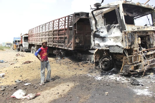 Một xe tải ở ngoại ô thủ đô Sanaa bị trúng bom. Ảnh: AFP |