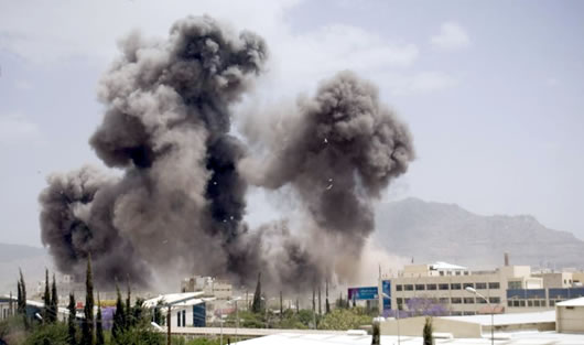 Khói bốc lên sau những cuộc không kích của Saudi Arabia và liên quân Arab ở Yemen. Ảnh: AP |
