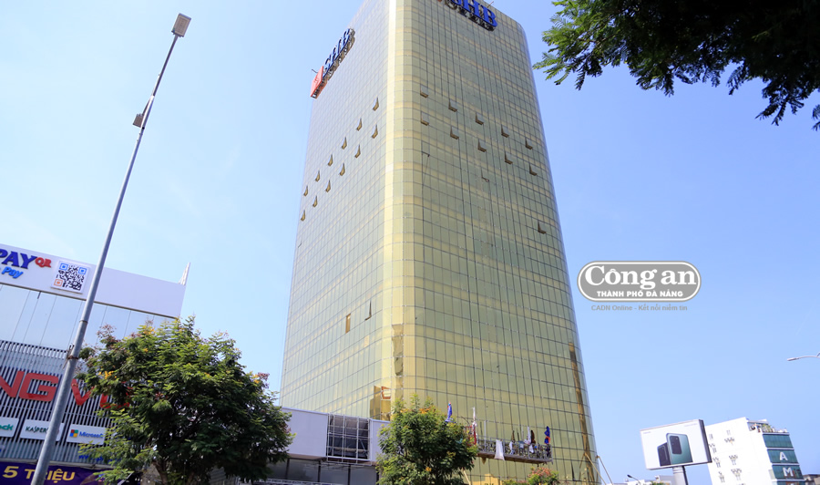 Tòa nhà Trung tâm thương mại và văn phòng dịch vụ SHB Đà Nẵng phủ kính vàng “nhức mắt” người đi đường. |