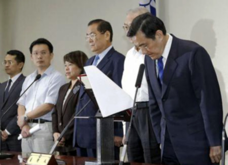 | Ông Mã Anh Cửu cúi đầu xin lỗi sau thất bại của KMT. Ảnh: Reuters |